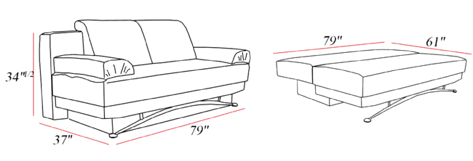 | Width | Depth | Height | Leg Height | Sitting Height | Sitting Depth | Bed Size |